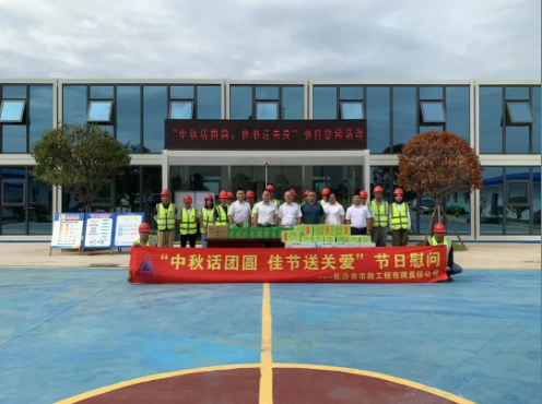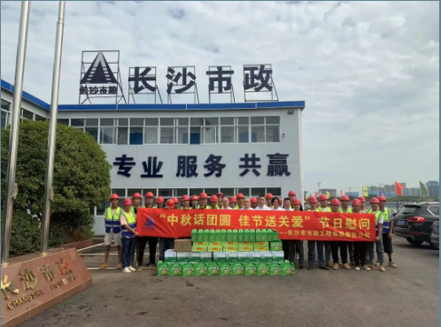 公司總經(jīng)理石含,副總經(jīng)理丁紅軍為靳江河西岸(含東山灣路)綜合整治工程項目、青竹湖統(tǒng)征儲備地塊配套路網(wǎng)工程項目 、秋江西路等六條路工程項目、長沙機(jī)場中軸大道工程項目的一線員工發(fā)放了月餅、水果、礦泉水等慰問品,帶去公司對他們的問候和囑托,對大家的敬業(yè)奉獻(xiàn)精神表示高度贊揚(yáng),并叮囑大家一定要保重身體,注意安全,圓滿完成施工任務(wù)。